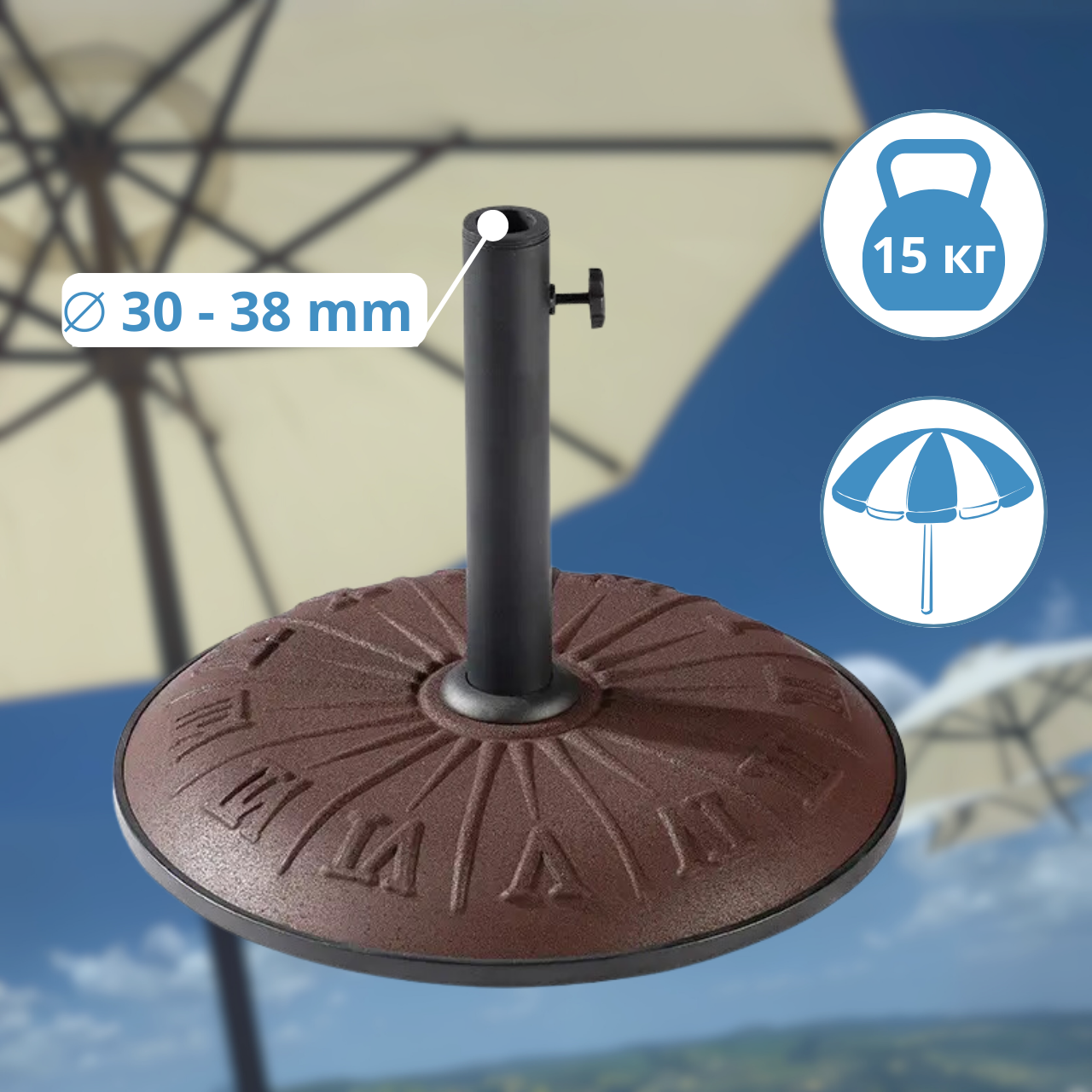 Підставка для парасольки бетонна Підставка для парасольки з циферблатом Тримач для парасольки від сонця Основа для парасольки